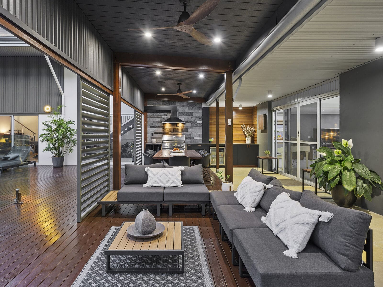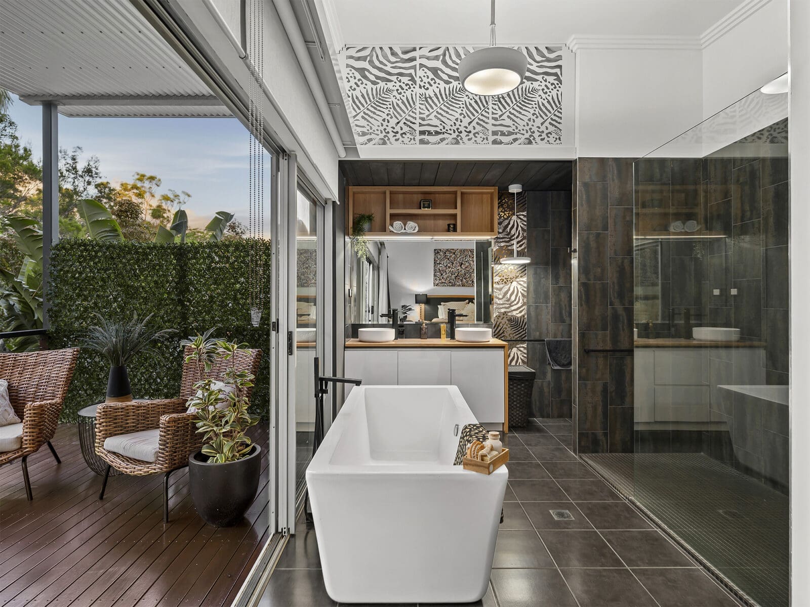 A modern second residence adds valuable flexibility, ideal for guests, extended family, Airbnb or staff accommodation. It offers open-plan living upstairs with an elevated deck overlooking the pool and gardens, plus a private ensuite bedroom downstairs with its own deck and parking.