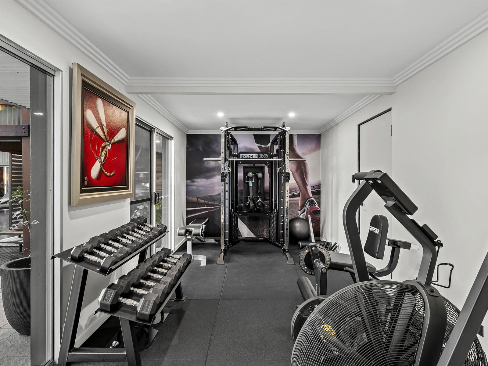 • Gymnasium or optional fifth bedroom with pool deck access