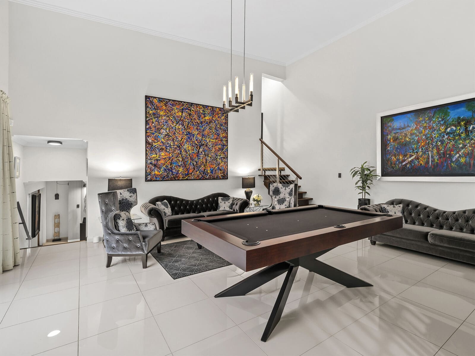 • Large games/entertaining room with soaring ceilings and pool deck access